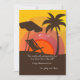 Send happy wishes to a newly retired person with a hint of sunny tomorrows featuring a sand-chair and umbrella under a palm tree.