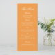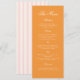 Sunset Glow wedding menu card for an aesthetic summer wedding, a refined and elevated detail perfect for couples planning a romantic sunset reception with a timeless retro-modern aesthetic. Featuring a rich orange tone inspired by Apricot Crush and a Warm Sunset Palette, this Summer Sunset Wedding menu showcases elegant script typography and a clean layout, creating a sophisticated golden hour dining experience.