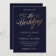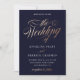 Sunset Gradient Deep Blue Gold Calligraphy Wedding Invitation