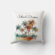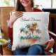 Drift off to dreams of tropical bliss with this customizable pillow, showcasing the captivating "Sunset Grove" watercolor design. Palm trees with rich, warm hues of orange, brown, and green stand tall, their fronds rendered with fluid artistry and subtle splatters for a dynamic feel. Perfect for adding unique, natural elegance to any sofa, bed, or armchair, you can personalize it with text like "Island Dreams," "My Happy Place," or "Rest in Paradise."