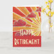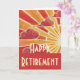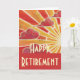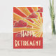 A gold and orange sun sets and the wind blows red and pink clouds across the sky. Greetings card with a gold, orange, red, pink and white customizable design for you to personalise with your own text, images and ideas. An original coloured pencil and metallic ink drawing by Jess Perry.