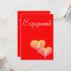 Monogrammed romantic Red Engagement Hearts party design. Invitation cards with two hearts on the front in shades of a sunset in golden yellow to pink hues on a solid red background with white text. Personalize front of cards with couple's monogrammed initials inside hearts. Personalize back of cards with your details (type in place of my sample text). Original Artwork Design by TamiraZDesigns.