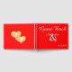 Romantic sunset shades in golden yellow to pink hearts on red. Personalize with the bride and groom's first names and date wedding in white script on front cover. Personalize back of book with two hearts and the couple's monogrammed initials written inside. Our Love Story is written on spine of book. Have the wedding guests sign your wedding guest book as a lovely keepsake book. Original Artwork design by TamiraZDesigns.