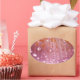 A 3D macro shot of a crystal chandelier. Myriads of strands of sparkling glass beads catch the light to create a lovely bokeh in the background. The blurred glass drops are reflected clearly in the sharply focused crystal balls in the foreground. The gold branches of the candelabra and soft pink atmosphere and lights give a sunset glow to the piece. Created in Vue.