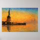 A parody on Claude Monet's San Giorgio Maggiore also known as Sunset in Venice or Twilight in Venice featuring the Statue of Liberty.
