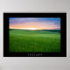Stylish poster print of a landscape with the rolling fields with green wheats at sunset in the Val d'Orcia valley in Tuscany, Italy with a black border and the text: 'Tuscany'. Great summer decoration on your wall!