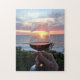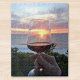 This jigsaw puzzle features a sunset on the French coast seen through a glass of red wine. Santé