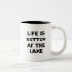 Mug with Sunset Lake logo and "Life is Better at the Lake" text in various sizes and styles