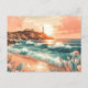 Sunset Lighthouse Ocean Beach Boho Floral Postcard