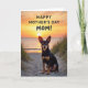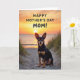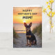 This card shows a small companion animal centered on a sandy path, sitting calmly as if waiting for someone it trusts, with a sleek dark coat and warm tan markings catching the last light ❤️. Its large ears stand upright and its dark eyes look forward with a gentle, loyal focus that feels like a quiet bond between friends. The path has soft ripples and leads your gaze toward a calm ocean, where the sun hangs low near the horizon. The sky shifts through golden yellow, orange, and deep red, and those tones shimmer across the water in a long reflection. A few wisps of dune grass edge the foreground, adding texture and a natural frame 🌼. Near the top, above the horizon line, the message “HAPPY MOTHER’S DAY MOM!” appears in bold, friendly lettering in a light tone that stands out against the warm sky. Subtle shadows along the animal’s face, chest, and ears give the fur a softly painted look. The bright sun sits just above the waterline, with amber light spreading outward into the surrounding clouds.