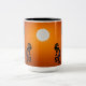 Southwestern Native American Sunset Kokopelli coffee cup mug art. A color combination that you can customize background colors to match your taste. Kokopelli Native American Indian cultures. Attributed to ancient aliens or tribal art and inspired by cave and rock drawings. Customize your Southwestern Style Native American sunset mug style and colors styles. Great gift idea.