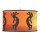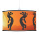 Southwest Sunset Native American Kokopelli Hanging Lamp art. A desert sunset color combination that you can customize background colors to match your taste. Kokopelli Native American Indian cultures. Attributed to ancient aliens or tribal art and inspired by cave and rock drawings. Customize your Southwestern Style Native American desert sunset lamp shade style and colors styles. Great gift idea.