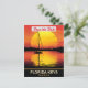 Florida Keys save the date wedding invitation, travel postcard. Lonely boat in the water on sunset.