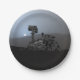 The beauty of a pale blue gray sunset on the planet Mars, as observed by the Curiosity rover which has been exploring the surface of Mars since 2012. Fine particles in the Martian atmosphere favor blue light waves over the redder shades observed on Earth. An image of Curiosity has been added to this scenic landscape for artistic effect.