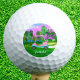 This wonderful golf ball is an attractive pink leather golf cart on a sunset golf course, add your name for a very personalized golf ball.