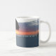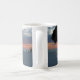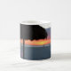A beautiful sunset on a white sand Florida beach with a palm frond umbrella printed on a coffee mug. Perfect for those who dream of the Florida beach life! Photo taken on a beach on Marco Island, Florida. Original photography copyright 2005 and original design copyright 2018 by Karen Coffelt.