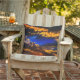 This pillow has a sunset picture on it.