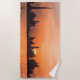 Sunset over a seaside town - watercolor beach towel