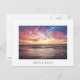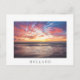 Photo postcard of a colorful sunset with great clouds over the North Sea and the beach of Kijkduin on a summer evening in The Hague at the west coast of the Netherlands with a white border and the text 'Holland'.