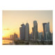 Photo print of the skyscrapers in the skyline of the commercial center of Doha, the capital of the Arabian Gulf country Qatar at sunset.