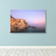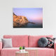 Canvas landscape print of the purple sky at sunset over the lovely village Manarola, built on the rocks above the Mediterranean Sea at the coast of the Cinque Terre area in Liguria, Italy.