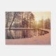 Sunset over park with small frosty lake doormat