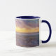 This beach mug features my original photograph of a sunset over the ocean. I processed my photograph with an oil pastel painterly style for an artsy flair. The handle and inside of the cup are dark blue to complement the artwork.