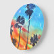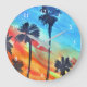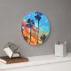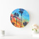 Sunset Palm trees beach surf art Large Clock