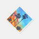 Sunset beach with palm trees original art by Sacha Grossel. Red and orange sunset dreaming beach theme art in original watercolor style. Surf sunset theme.