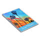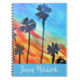 Sunset beach with palm trees original art by Sacha Grossel. Red and orange sunset dreaming beach theme art in original watercolor style. Surf sunset theme.