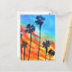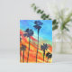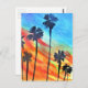 Sunset Palm trees beach surf art Postcard