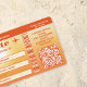 Destei's destination wedding save the date card design with a faux boarding pass looking theme. The design includes tropical green palm tree silhouettes, the sun, three flying bird silhouettes and an airplane silhouette. The background is a beautiful orange gradient giving the design a warm summer evening sunset look. The design has multiple personalizable text areas perfect for writing the date of the wedding, the names of the people getting married and even the location of the wedding. There is also a QR code template ideal for guiding guests to the couple's wedding website.