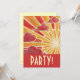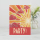 A gold and orange sun sets and the wind blows red and pink clouds across the sky. Invitation with a gold, orange, red, pink and white customizable design for you to personalise with your own text, images and ideas. An original coloured pencil and metallic ink drawing by Jess Perry