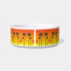 This is a heavy, durable bowl decorated with Tibbies of many colors, the perfect size for hungry/thirsty Tibs. The design is interesting and printing clear.