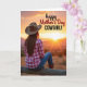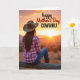 This design shows a lone figure seen from behind, sitting on a weathered wooden fence that runs along the lower part of the scene. They wear a wide-brimmed hat, a pink-and-white plaid shirt, blue denim jeans, and brown boots, and their relaxed posture suggests they’re savoring a tender, private moment ❤️. Ahead of them, the sun sits low and sends long rays across the sky, as if reaching out with a gentle warmth like a quiet hug between close friends. The horizon glows in oranges and deep amber, blending upward into peach and soft rose tones, with faint mountains resting in the distance. The rough grain of the fence adds a rustic texture against the smooth, glowing sky, grounding the scene in a calm outdoor setting 🌼. In the upper right, a celebratory message appears as a flowing, cursive-style line paired with thicker lettering beneath it, both in a light color that stands out against the darker sky. The bright sunburst and its radiating beams dominate the center of the sky, while the fence’s uneven posts and scratches are clearly visible along the bottom edge.