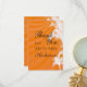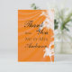 Tropical scene with palm trees on an orange colored sunset background. This wedding thank you card design also comes on many other stationery products to suit all your wedding set needs.