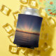 Sunset rays on the water on this can cooler that says it's beverage time!