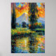 Sunset Reflection Vibrant Landscape Impressionism Poster