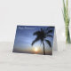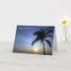 Palm trees on a beach at sunset. Customize the card for any occasion.