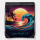 Introducing our Sunset Retro Surf Wave Drawstring Bag: a tribute to coastal paradise! Embrace the allure of the ocean with this captivating design that blends the vibrant hues of a beach sunset, the exotic charm of palm trees, and the timeless symbol of surf culture—a big wave.