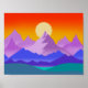 Sunset Rocky Mountain Landscape Illustration Poster