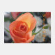 This custom doormat is designed with a close-up image of a sunset-colored rose. "Welcome" is added in large, easy-to-read lettering in a shade of orange that matches the bloom. The mat measures 24" x 36", and has a smooth felt front & nonslip latex back. It also has a reinforced edge to resist fraying, is both fade & mildew resistant, and cleans easily with a spray of water. Ideal for covered entryways such as porches, apartments, offices, condos, etc. Feel free to contact me through Zazzle if you have questions about this mat or would like help transferring this design to a different item. I'm happy to help to ensure the image and lettering fit correctly.
