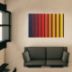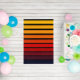Multicolor striped design inspired by the Sunset. Minimalist design in dark blue, and different shades of pink, red, orange, and yellow.
