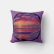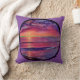A copy of a round original sunset seacape landscape painting by Joyce Jackson outlined in black on a purple background.