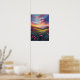 A mesmerizing symphony of colors unfolds in this classic oil painting digital art. Pink and blue flowers dance in the foreground, their petals capturing the golden hues of a breathtaking sunset on the horizon. Nature's elegance immortalized on canvas.