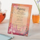 The menu is presented on a freestanding pedestal sign—perfect for buffets, place settings, or display stands—offering both beauty and visibility. All text is fully customizable, including the couple’s names, wedding date, and menu items from appetizers to desserts, so it can suit any cuisine or celebration style.