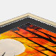 This vibrant oil painting captures the breathtaking beauty of a forest at sunset. The bold strokes and contrasting colors create a mesmerizing scene of towering trees silhouetted against a fiery orange sky. The full moon, a symbol of peace and tranquility, casts a soft glow over the tranquil water, reflecting the celestial beauty above. This artwork is perfect for adding a touch of nature and serenity to any space.