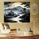 A beautiful quote to start the day. Beautiful sunset/sunrise scene from Japan. The backdrop is Mount Fuji, a famous mountain from Japan. The landscape has temple and the mist. The colour palette consist of mostly black and white except for the sun which has orange and yellow hues. The Japanese Quote can be personalized. You can put your own quote. The painting quote has: