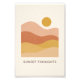 Add warmth and serenity to your space with this Sunset Thoughts abstract landscape poster. Featuring soft, curved shapes in muted coral, clay, and golden hues, this minimalist mid-century modern wall print captures the calm beauty of a sunset. Perfect for living rooms, bedrooms, or creative spaces, it enhances any cozy or boho-inspired interior with a timeless, peaceful aesthetic.