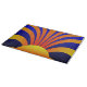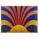 Sun Graffiti brick wall is a digital work of art with a dark blue gradient background and yellow redish orange gradient sun at the bottom, sun beams beaming up and outward.